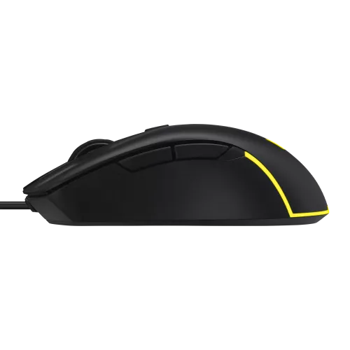 The ASUS TUF Gaming M3 Gen II P309 Wired Gaming Mouse weighs only 59 grams and is designed to provide comfort even during the most intense gaming sessions. With ASUS Antibacterial Guard protection and IP56 water and dust resistance, this robust mouse is prepared for whatever challenge the day may present. With three onboard memory profiles, six programmable buttons, and Aura Sync RGB lighting, you may customize it to your taste. This mouse is made to survive long gaming sessions and has sturdy key switches rated for 60 million clicks. USB 2.0 is used for connectivity, and a Type-C to Type-A connector ensures dependable and quick PC contact. With its high resolution of up to 8000 DPI, the PAW3318 sensor that powers the ASUS TUF Gaming M3 Gen II P309 Mouse allows for precise tracking and quick cursor movements, two things that are crucial for competitive gaming. It can withstand accelerations of up to 30 g and maintain a maximum speed of 200 inches per second, so it can keep up with quick and nimble motions. High responsiveness and low latency are ensured by the 1000 Hz USB report rate, which is essential for fast-paced games where every millisecond matters. With a weight of just 59 grams without the wire, this mouse is incredibly light, making it easy to handle and less likely to cause tiredness over time. With its six programmable buttons, it provides a wide range of customization possibilities to suit various gaming tastes and styles. Additionally, AURA Sync RGB lighting is included in the ASUS TUF Gaming M3 Gen II Mouse, enabling users to customize the mouse’s appearance and synchronize it with other AURA Sync-compatible devices for a unified gaming setup.